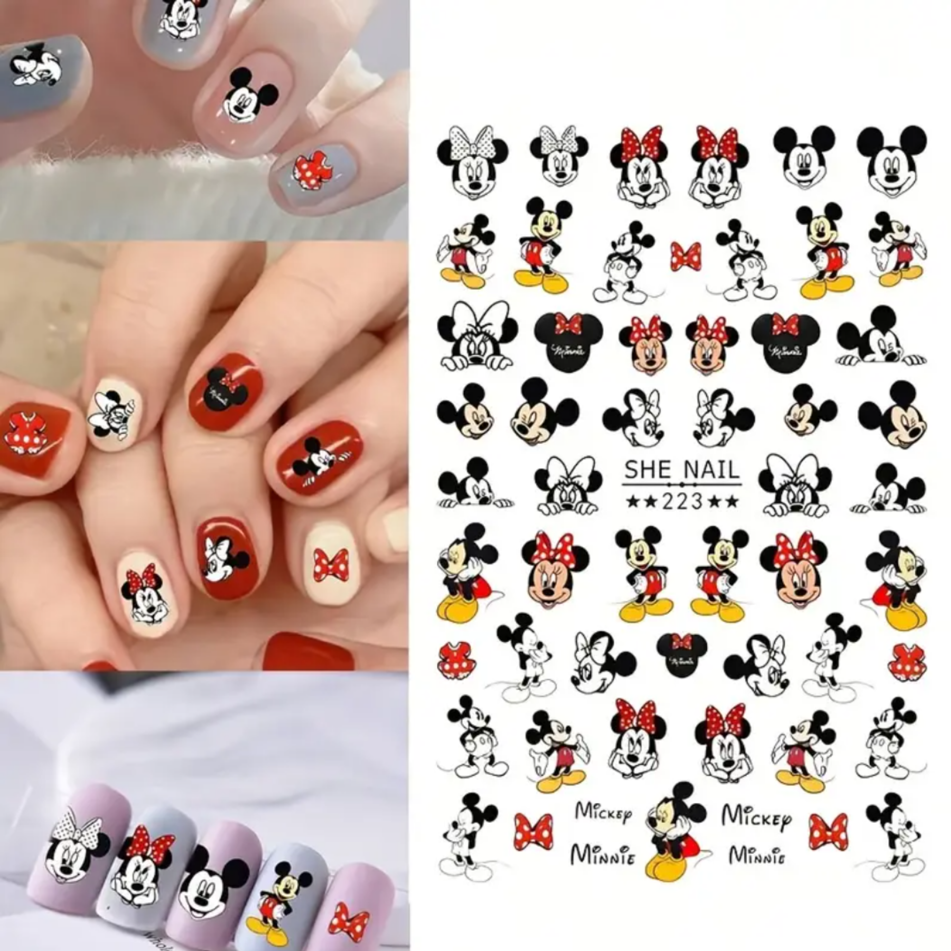 🎀 Adorable Cartoon Characters: Featuring a variety of cute Mickey and Minnie designs, perfect for playful and sweet nail art.