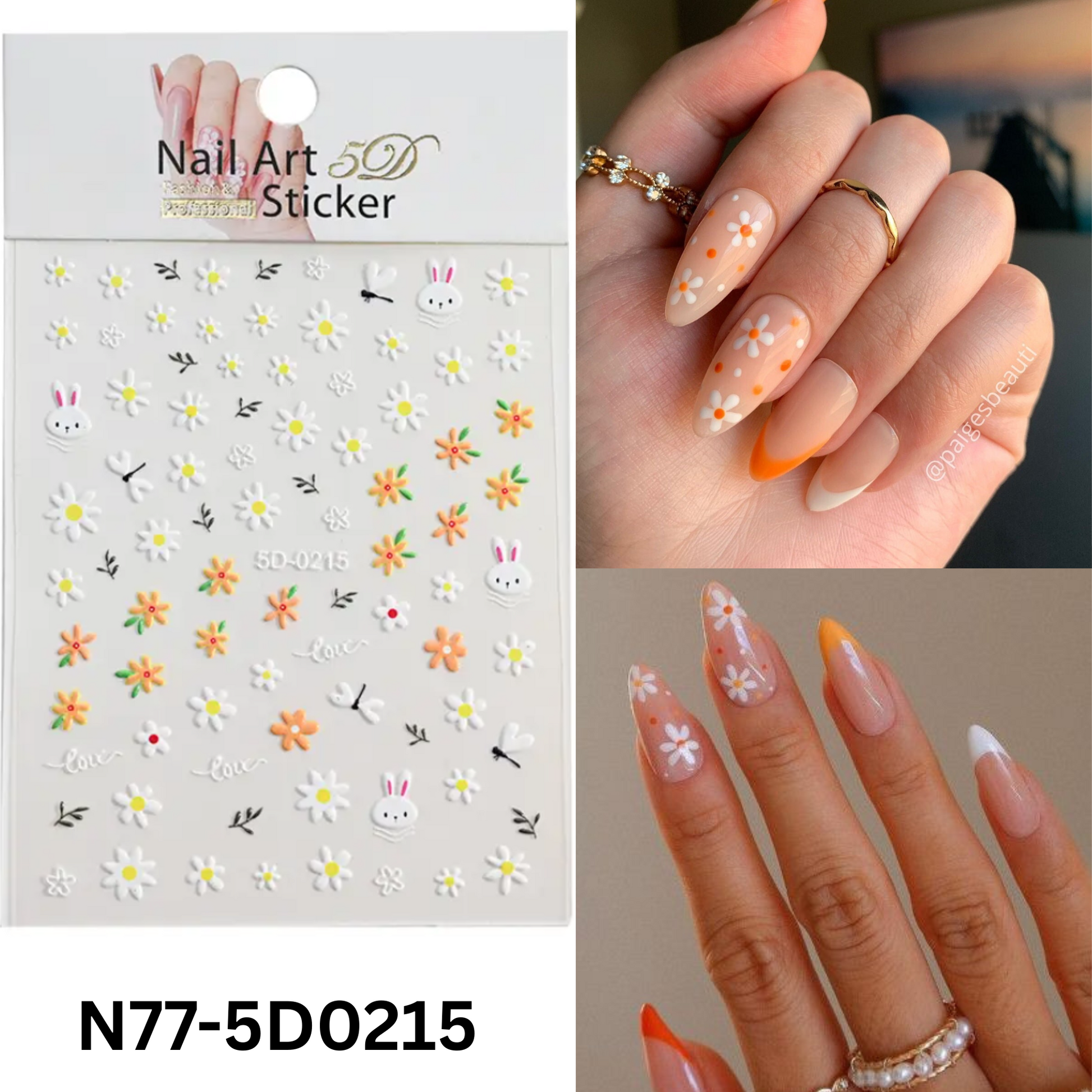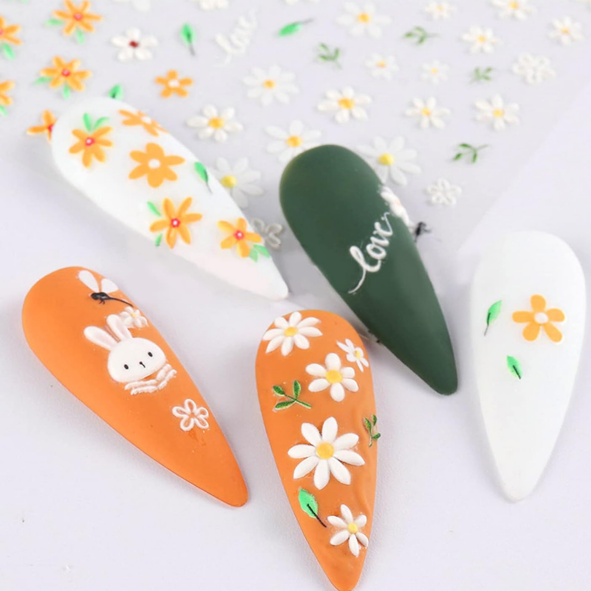 5D Floral Nail Stickers, Self-Adhesive Pastel flower & bunny decals, for Spring/Summer