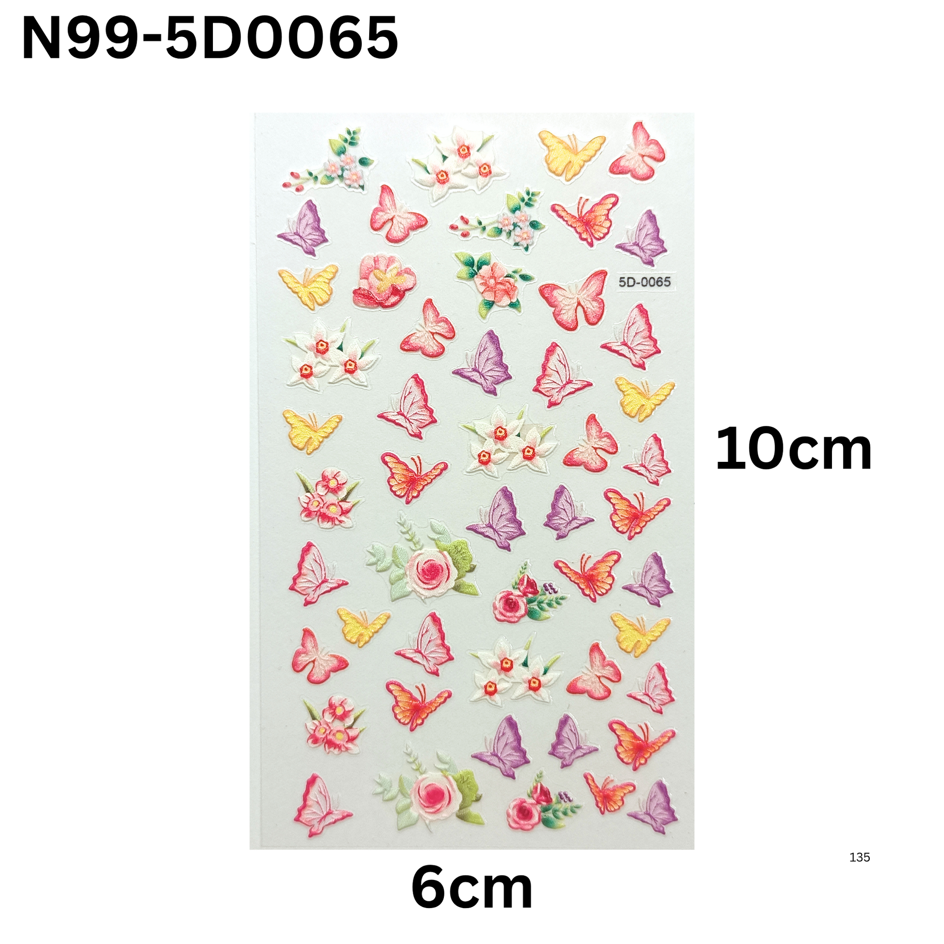 Add a dreamy, dimensional touch to your nails with these 5D Butterfly and Floral Nail Stickers! With a raised, embossed texture and beautiful butterfly and flower designs, this sheet is perfect for both DIY nail lovers and professional nail technicians.