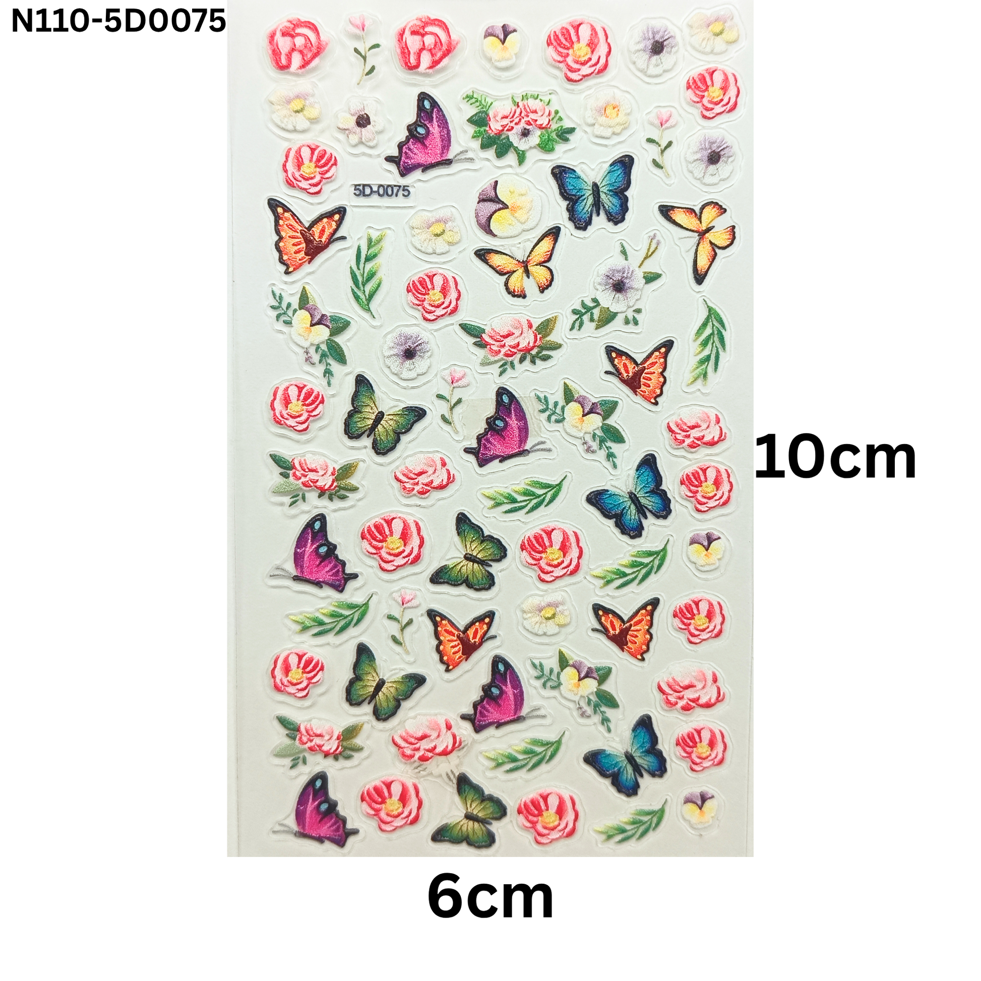 Add a dreamy, dimensional touch to your nails with these 5D Butterfly and Floral Nail Stickers! With a raised, embossed texture and beautiful butterfly and flower designs, this sheet is perfect for both DIY nail lovers and professional nail technicians.