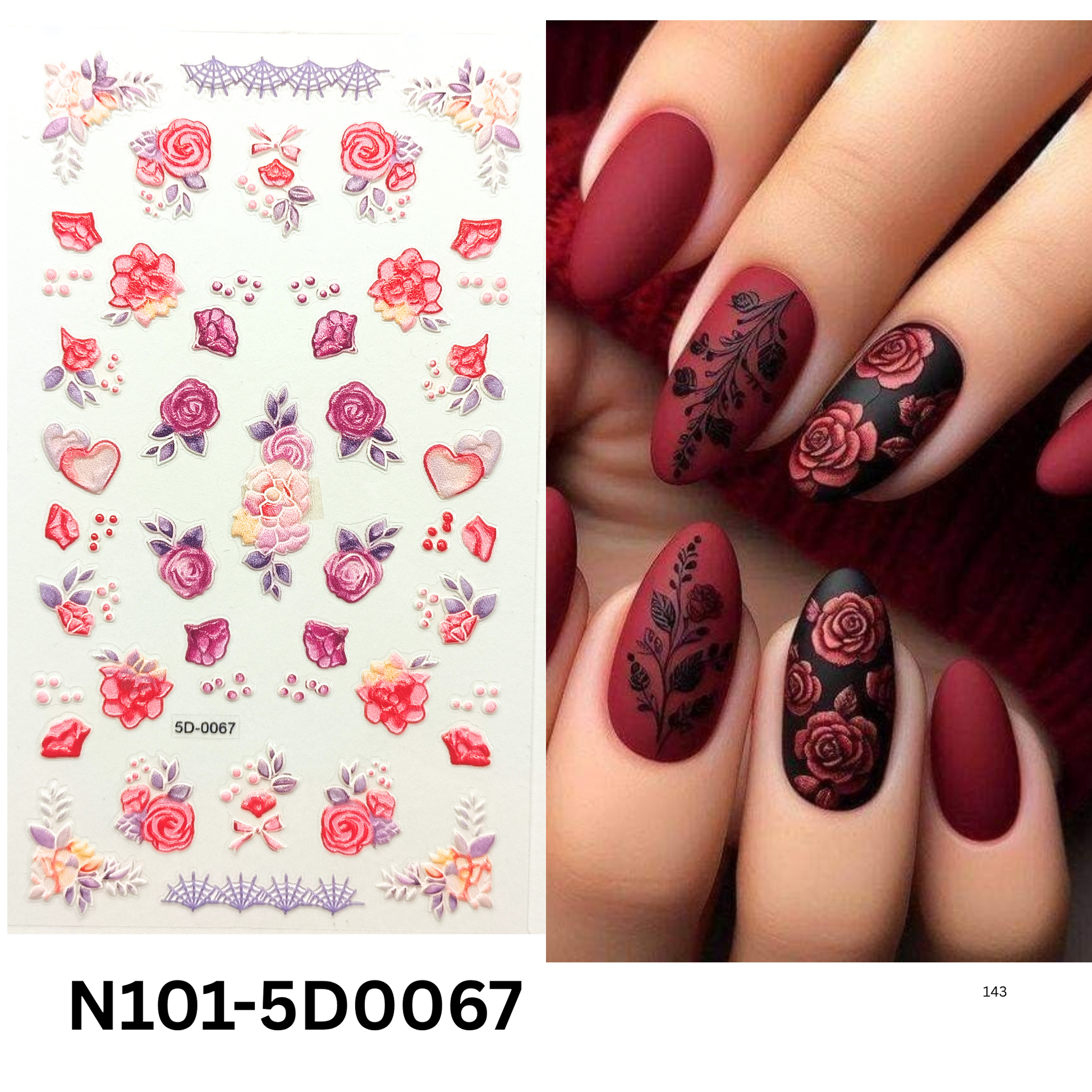 5D Rose Flower Nail Art Stickers β Embossed Floral Nail Decals for Manicure