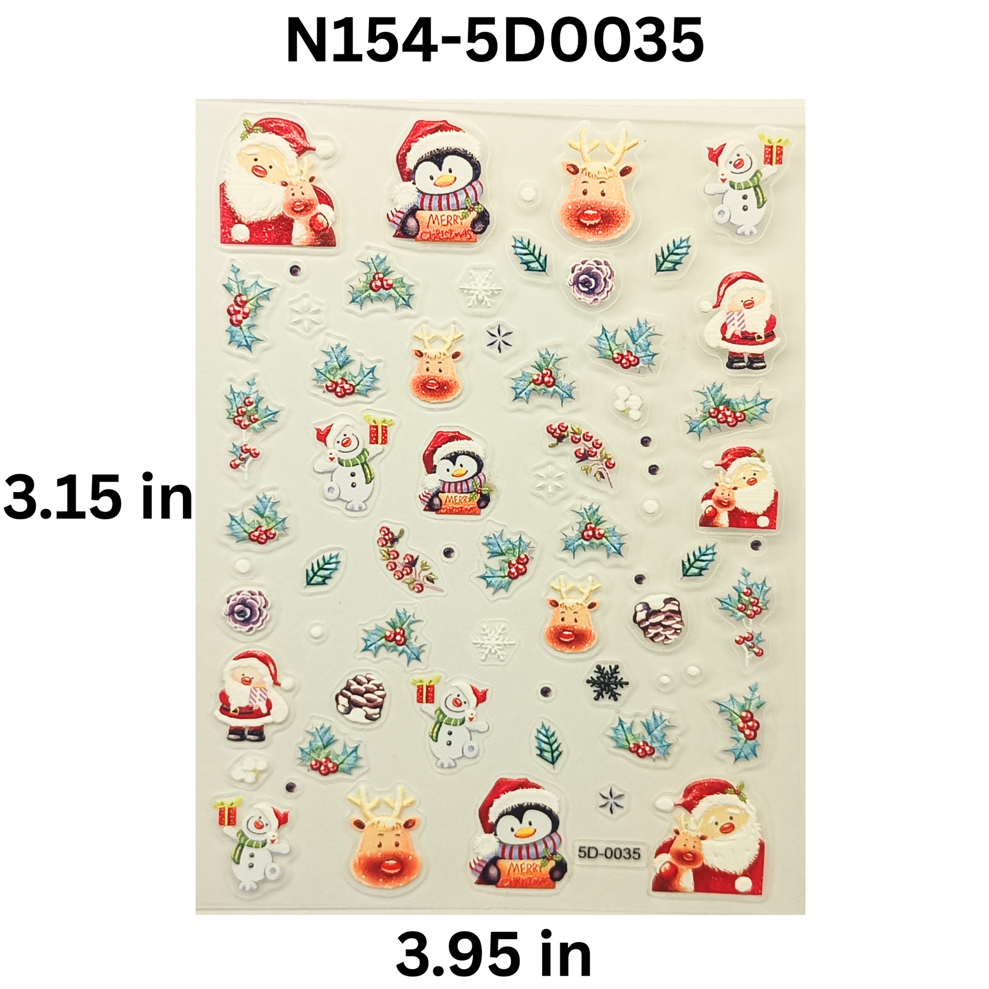 Perfect for DIY manicures, these festive nail decals feature adorable Christmas designs such as Santa, snowflakes, reindeer, Christmas trees, gifts, and more. The 5D embossed effect makes your nails stand out with a unique and stylish look.