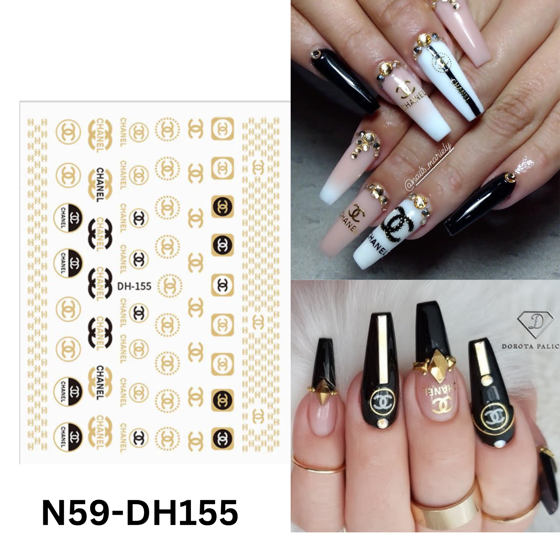 Black And Gold Nail Sticker Design, Nail 3D Sticker, Nail Art Sticker Acrylic, Dipping, Gel