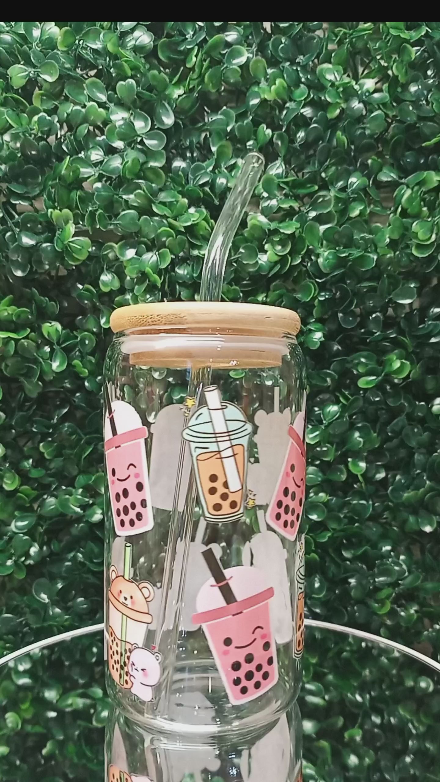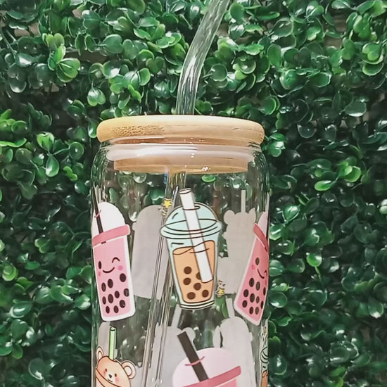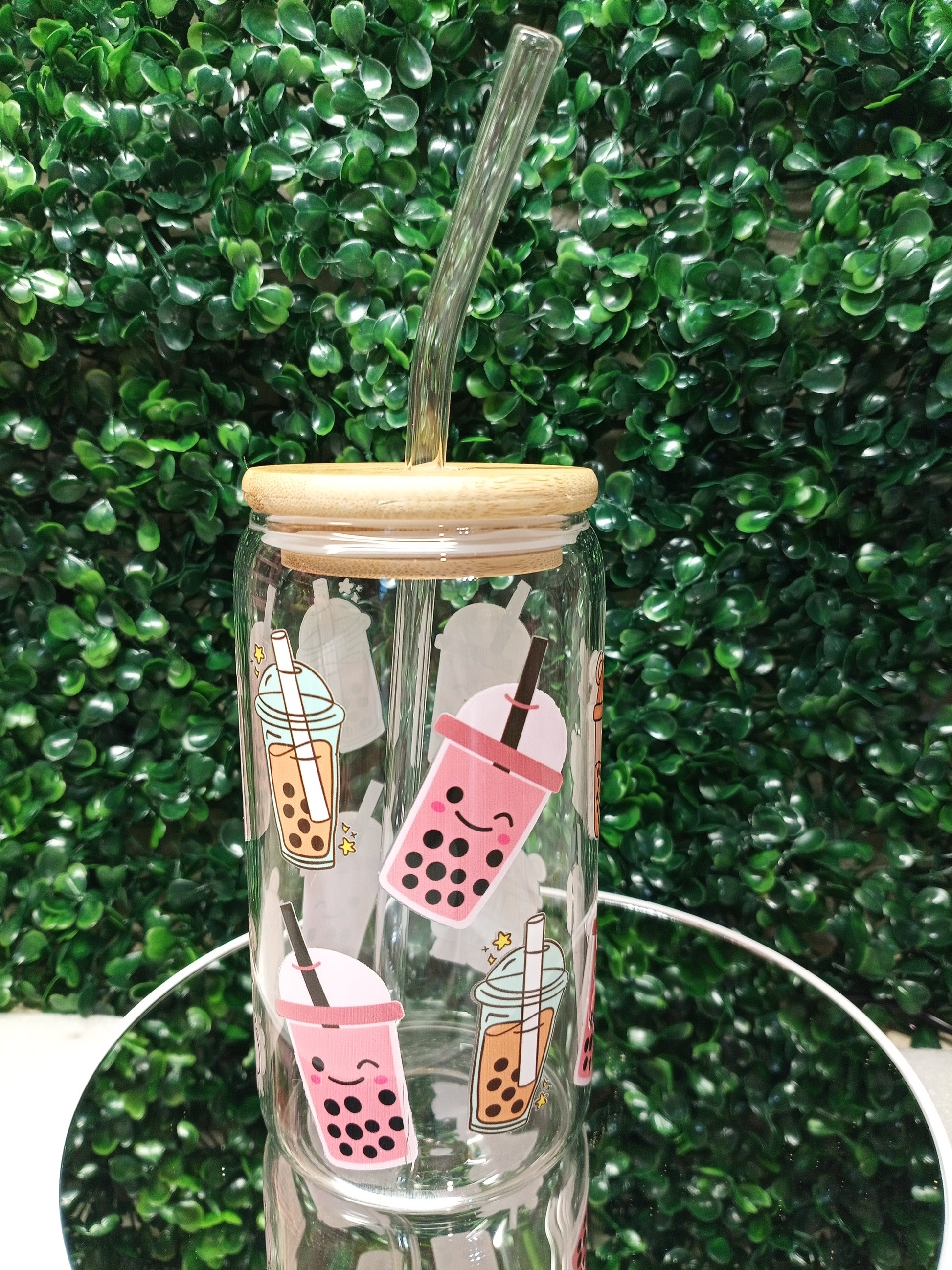 Boba Milk Tea Glass Cup, Personalized Glass Cup 16oz & 20oz Tea, Coffee, Smoothie Glass, Perfect for Home, Office, Party, Birthday