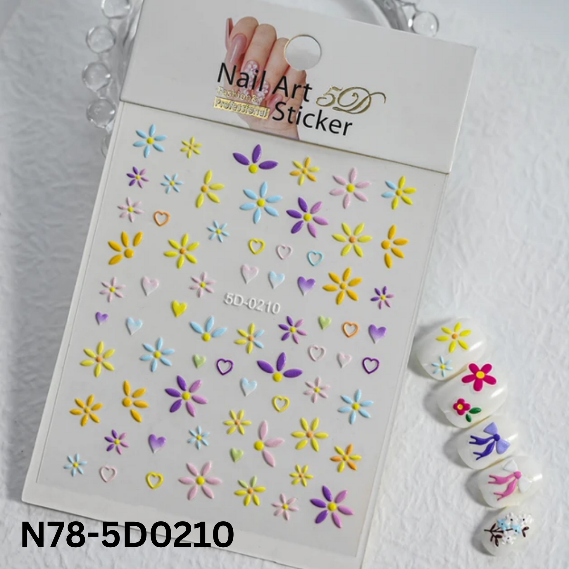 Colorful Spring Flower Nail Stickers,5D/3D Floral Nail Stickers