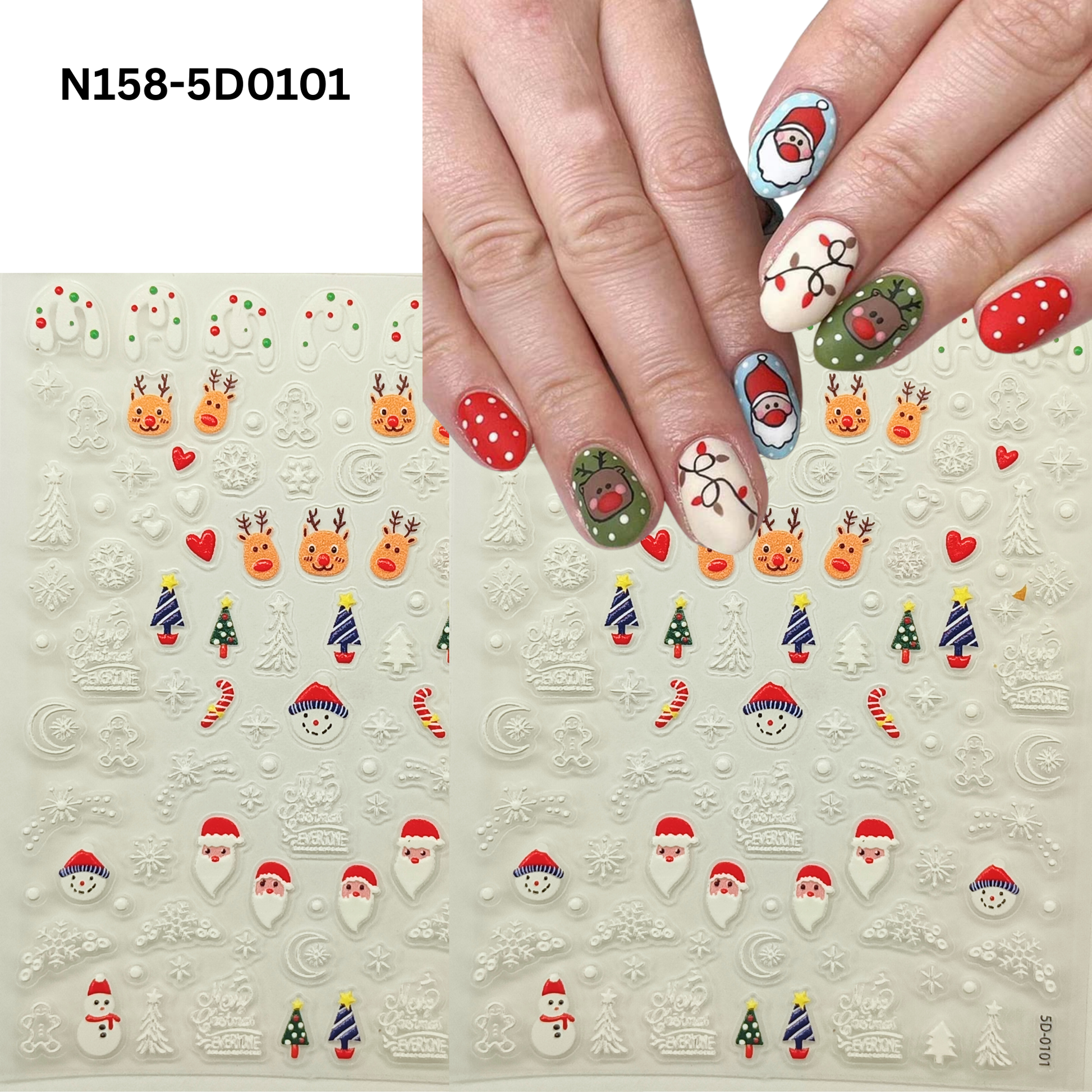 Perfect for DIY manicures, these festive nail decals feature adorable Christmas designs such as Santa, snowflakes, reindeer, Christmas trees, gifts, and more. The 5D embossed effect makes your nails stand out with a unique and stylish look.