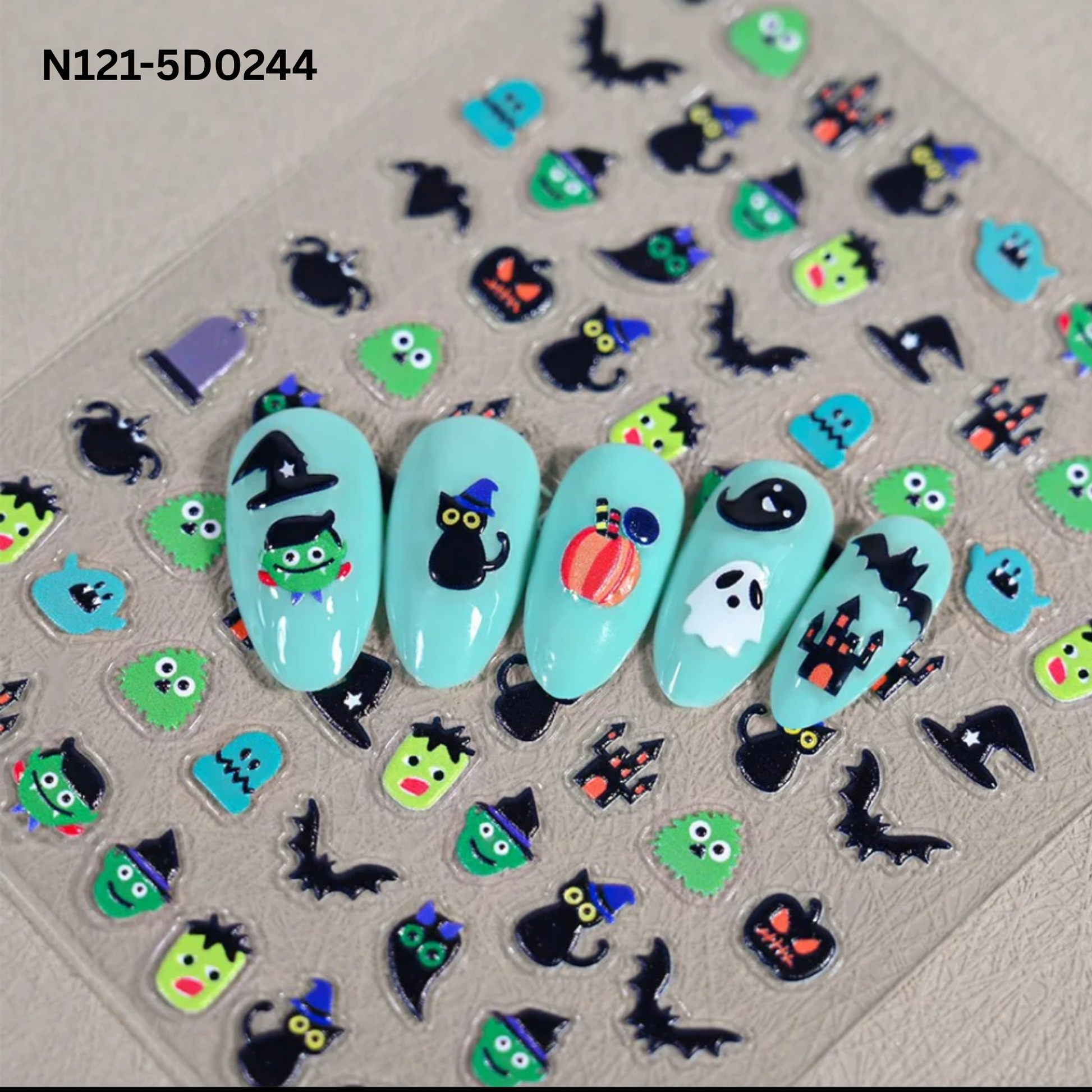 š Halloween 5D Nail Stickers ā Spooky & Cute Nail Art Decals