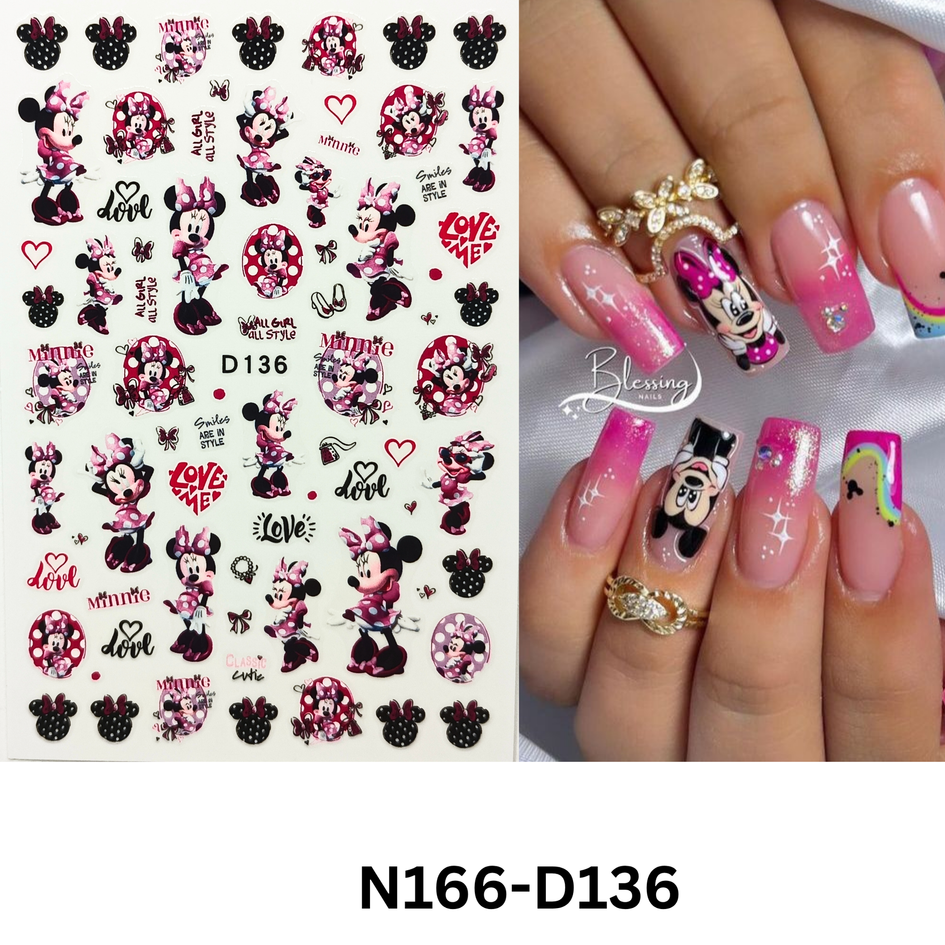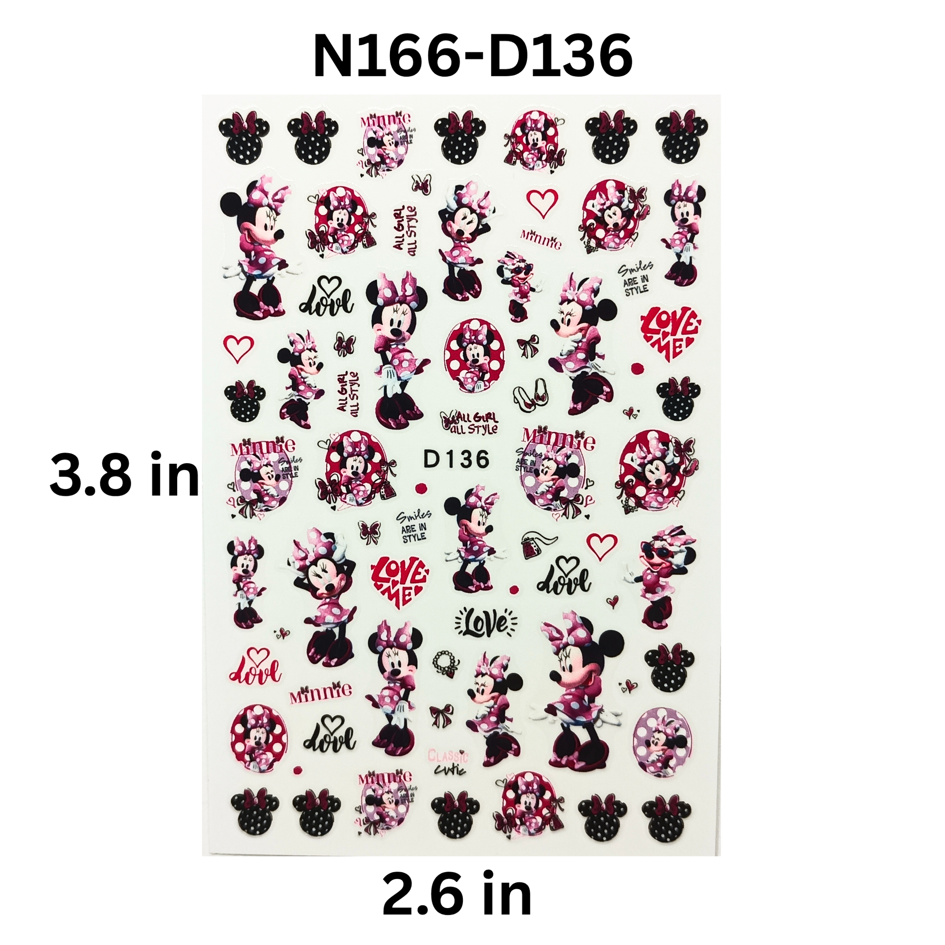 Add a fun and adorable touch to your nails with these Mickey & Minnie 3D Nail Decals (N162-D135)! Featuring cute cartoon characters, hearts, and “Love” designs — perfect for creating a playful and charming manicure look.