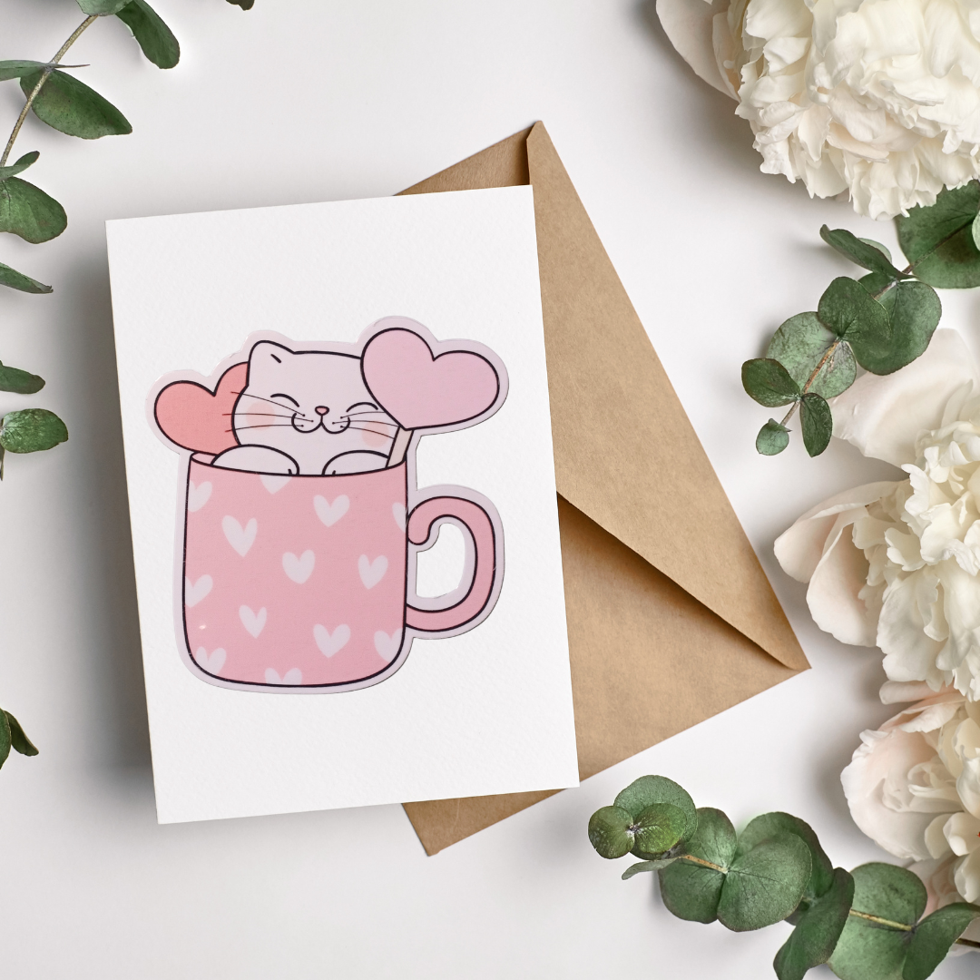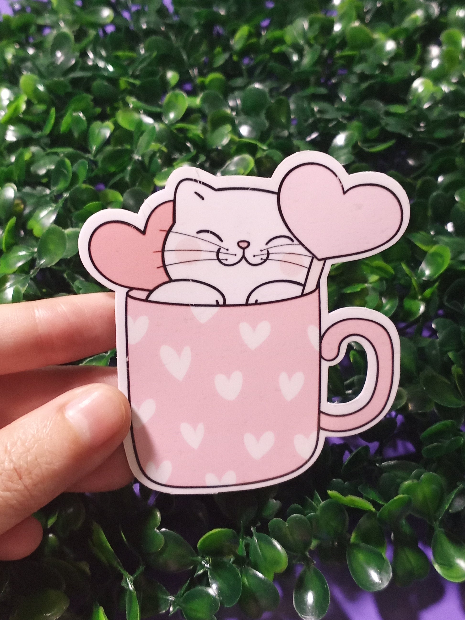 Cute Cat in Heart Waterproof Vinyl Sticker 3 Inch Durable Decal for Laptops, Water Bottles, Phones