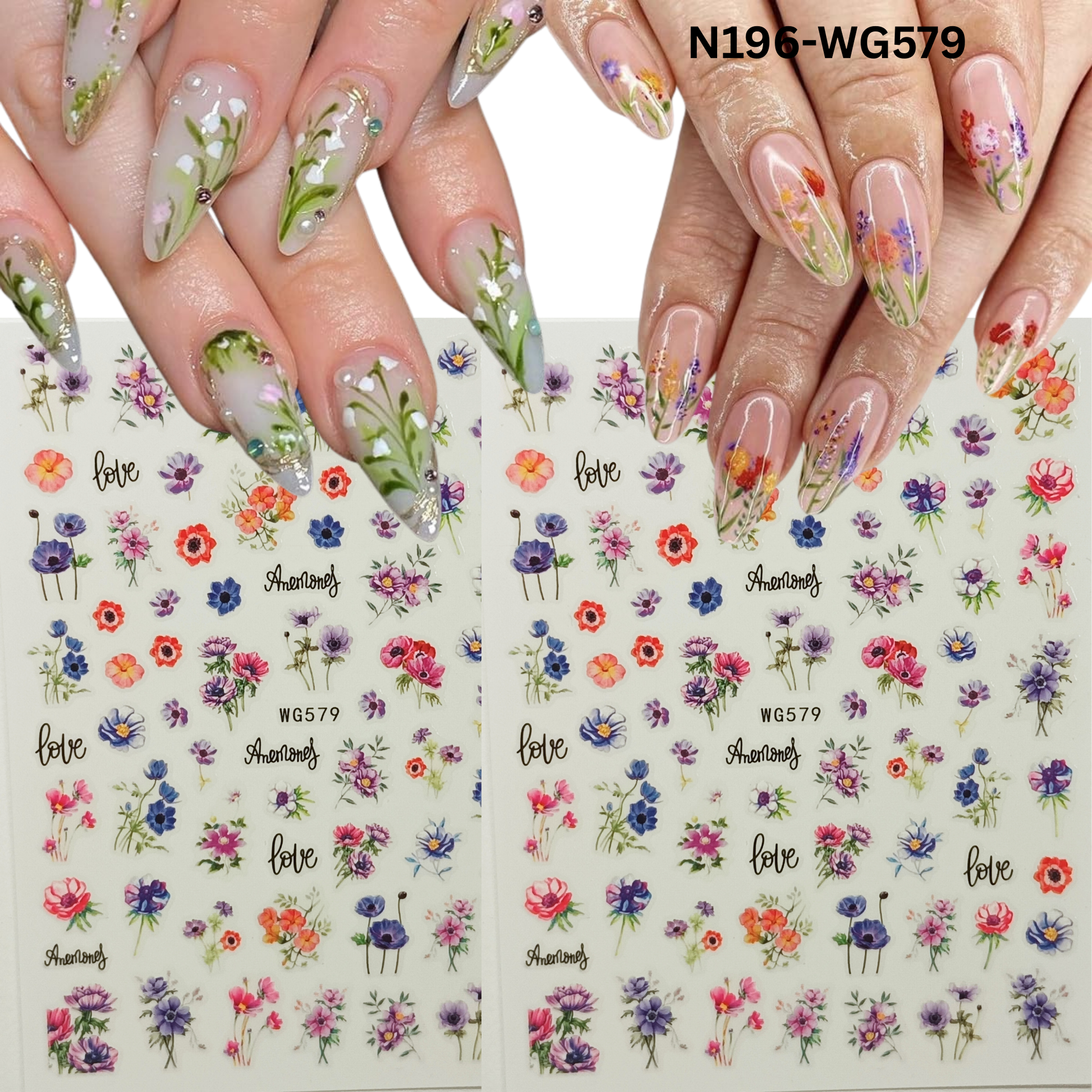 Create soft, romantic nail designs with these beautiful floral nail stickers featuring watercolor-style flowers and elegant “love” lettering. The delicate details and vibrant colors make this nail decal sheet perfect for everyday wear, spring looks, weddings, and special occasions.