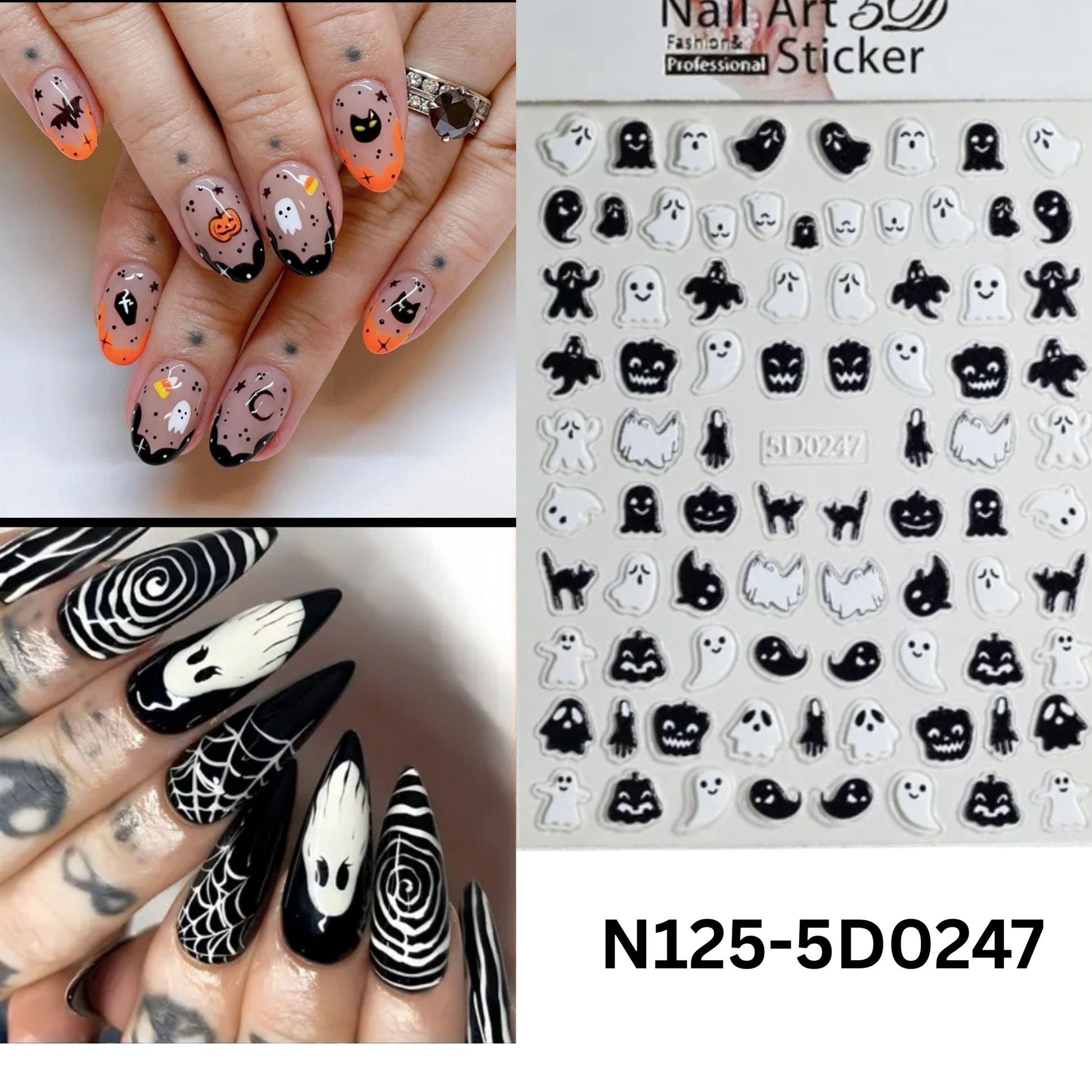 š Halloween 5D Nail Stickers ā Spooky & Cute Nail Art Decals