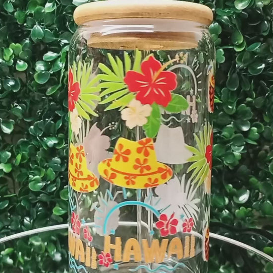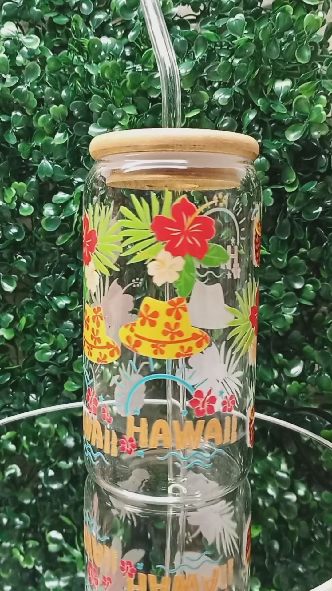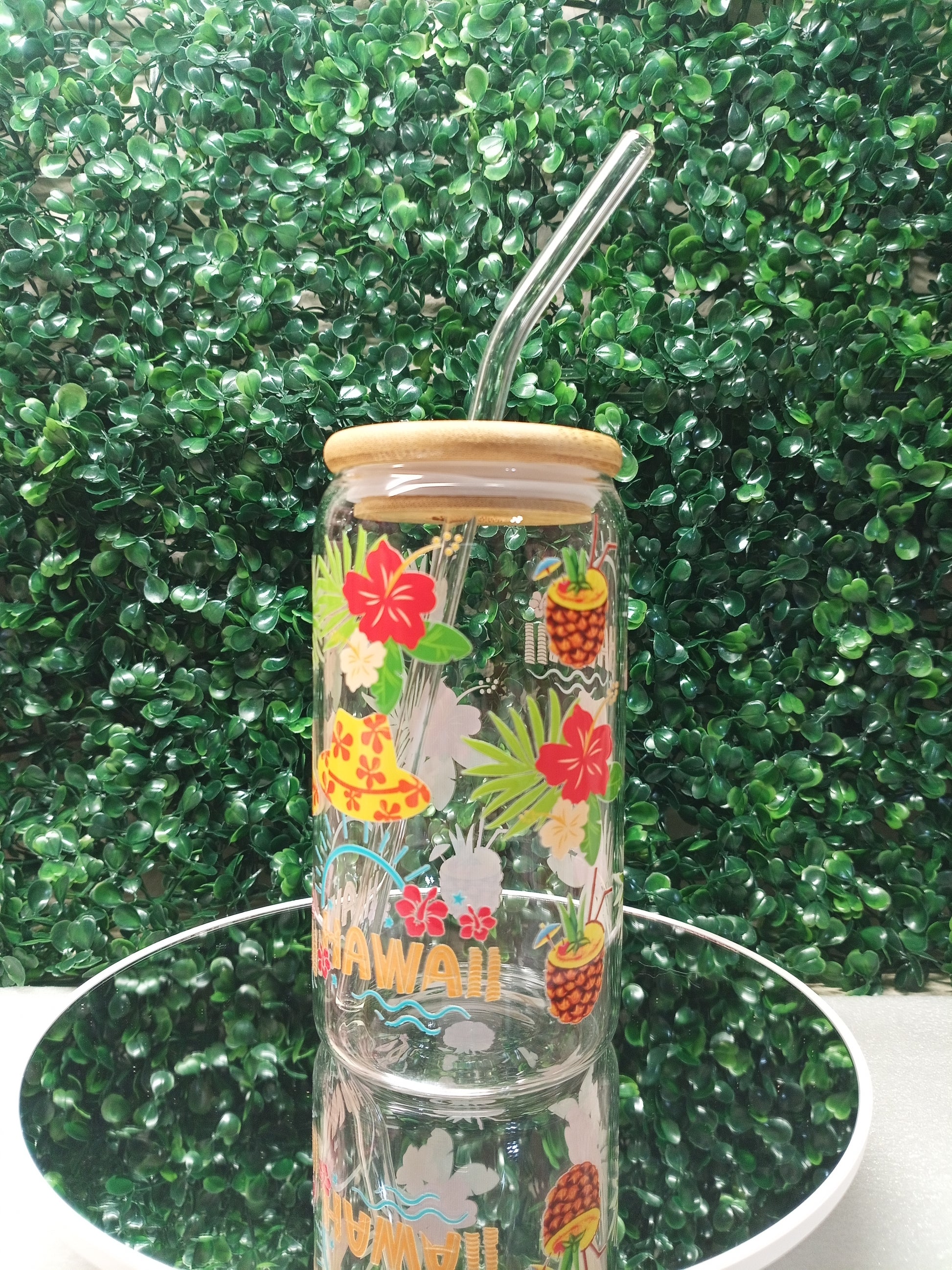 Hawaiian Personalized Glass Cup 16oz & 20oz Tea, Coffee, Smoothie Glass, Perfect for Home, Office, Party, Birthday,Travel glass cup