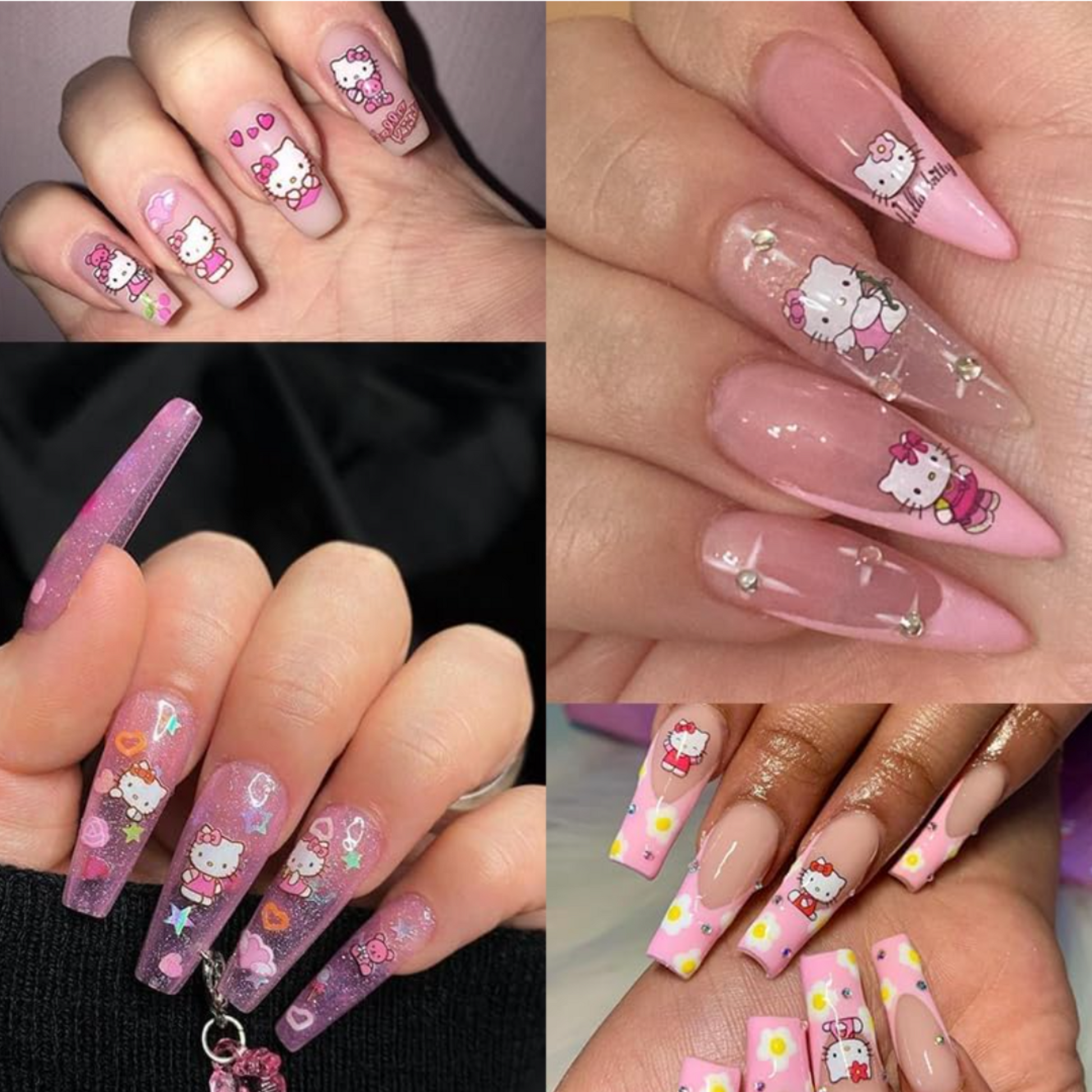 SET OF 5 Hello Kitty 3D Nail Stickers – Perfect for Gel, Acrylic & Natural Nails