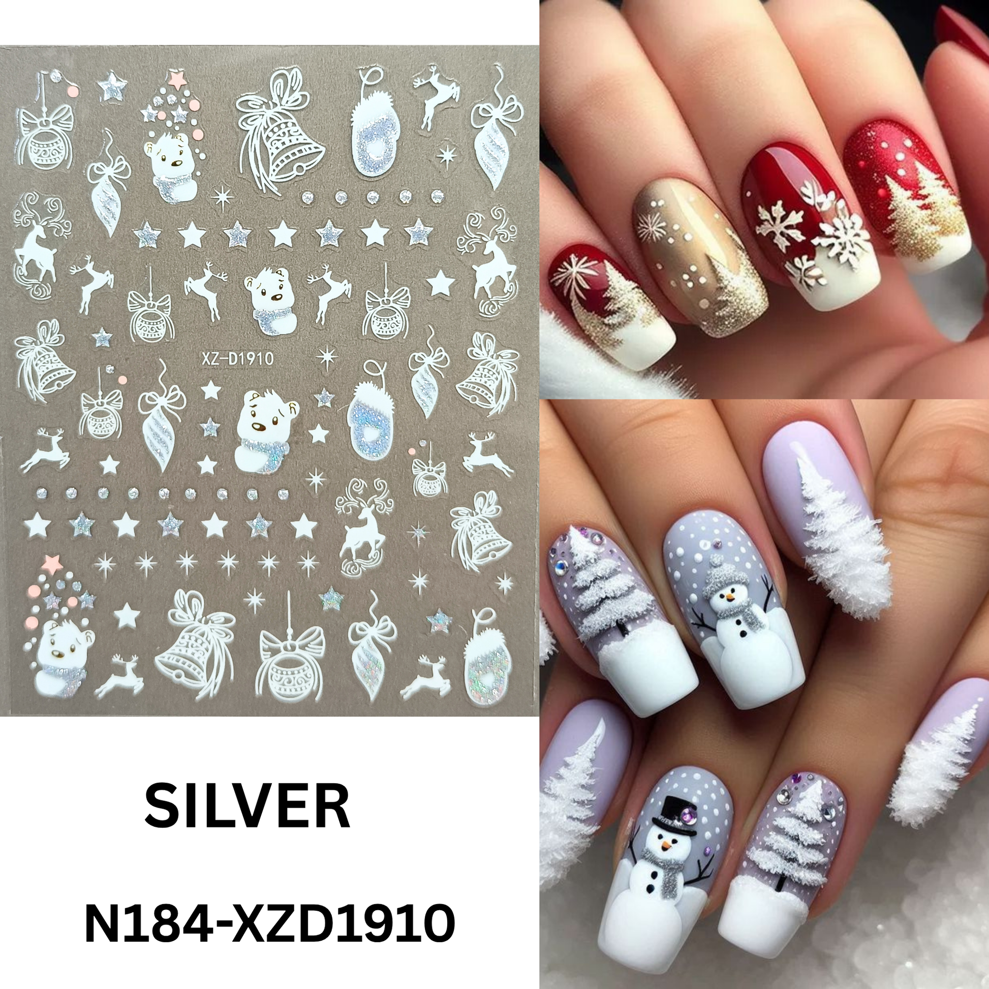 12 Sheets of 3D Christmas Nail Decals (assorted designs N174–N185)