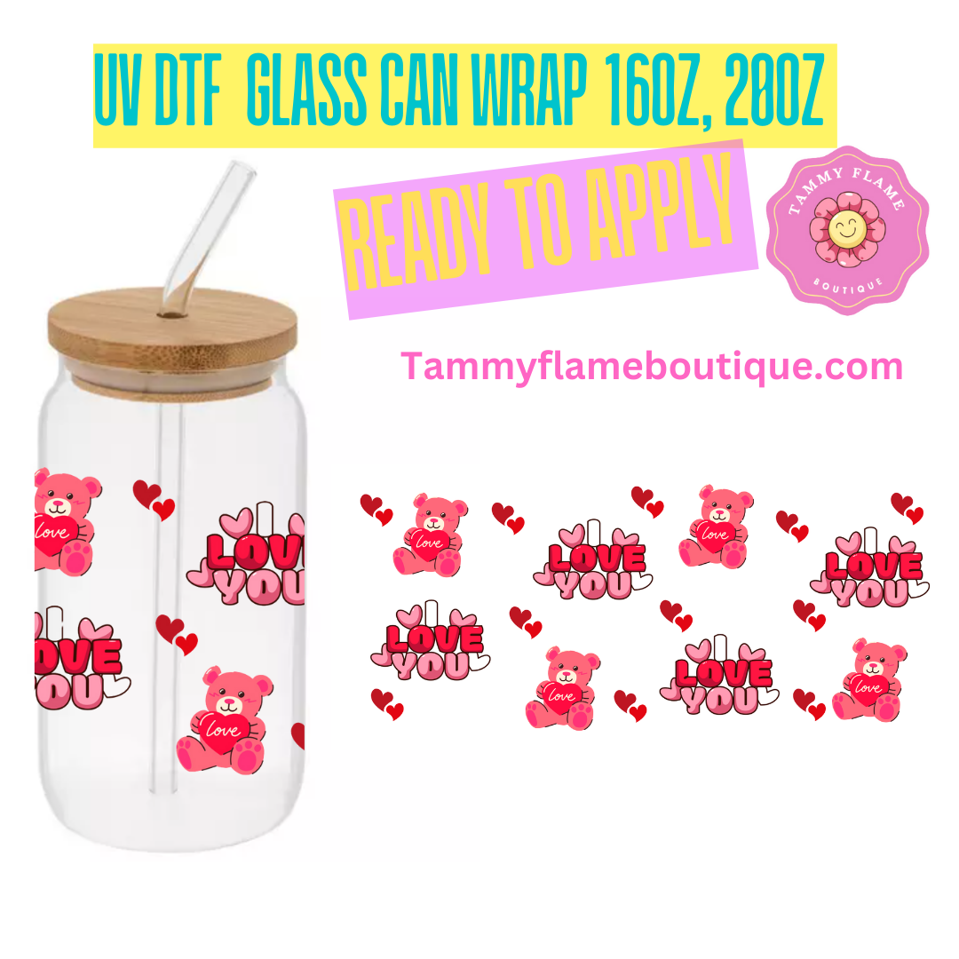 I Love You Bear Love 16oz, 20 oz UV DTF Cup Wraps Bottles & Glassware