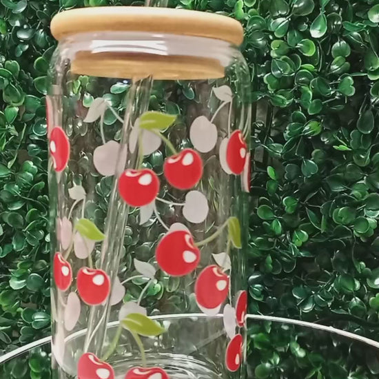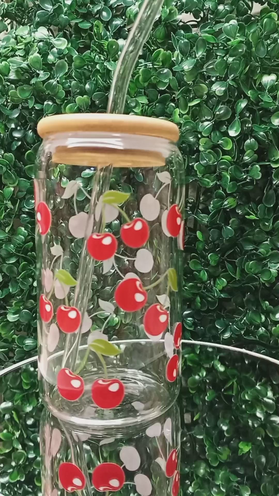 Cherry Glass cup with lid and Straw Personalized Glass Cup 16oz & 20oz Tea, Coffee, Smoothie Glass,Perfect for Home, Office, Party, Birthday