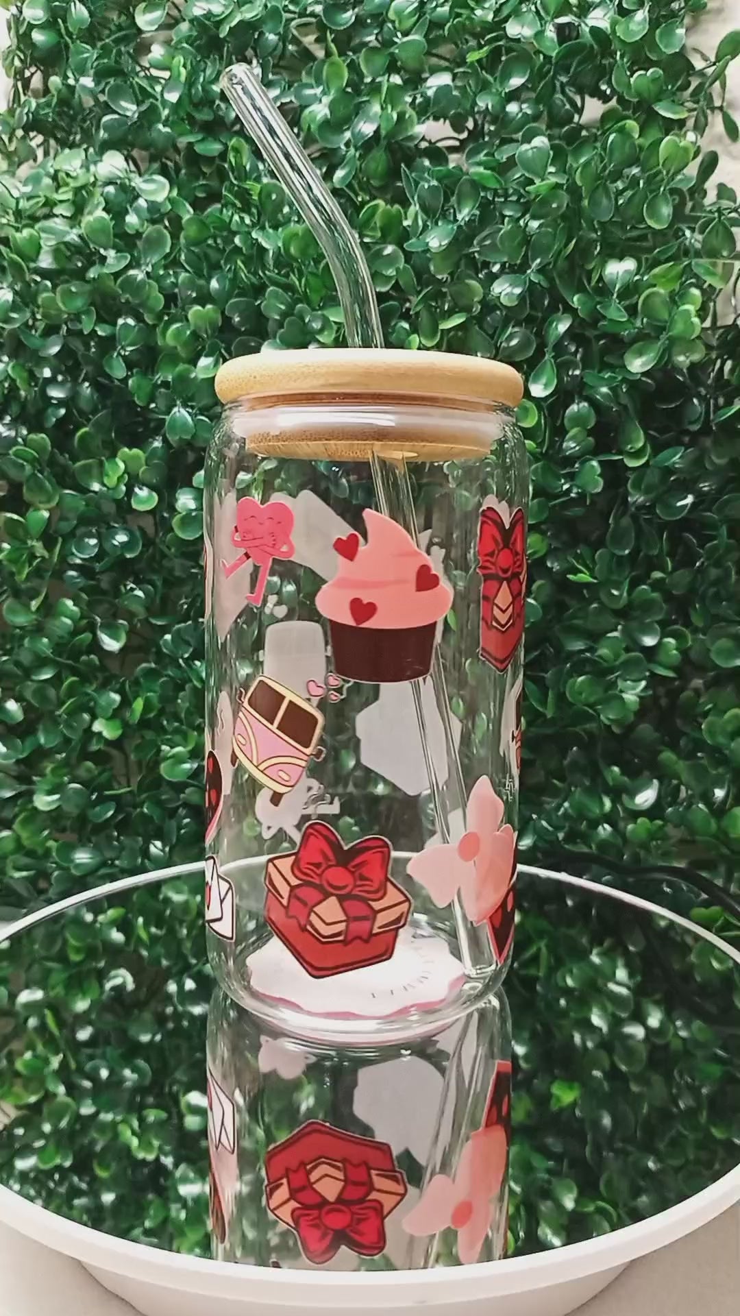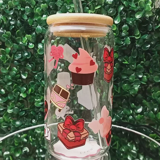 Love Paws Iced Coffee Glass cup with lid and Straw Personalized gift for Valentine's Day, Birthday, 16oz, 20oz Glass Tumbler