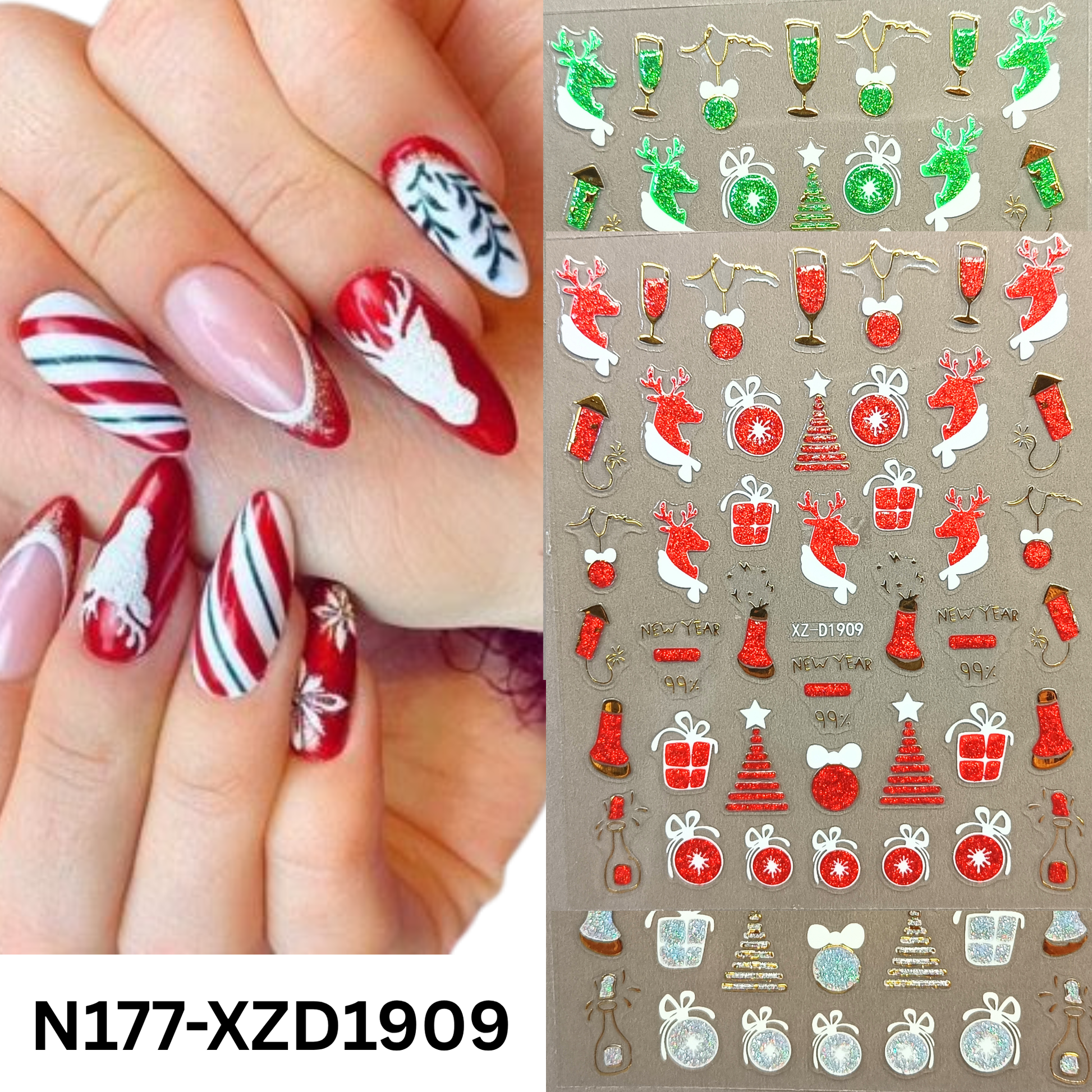 Add a touch of holiday sparkle to your manicure with these Christmas 3D Nail Decals! Featuring cute reindeer faces, snowflakes, and candy cane stripe designs, this set is perfect for creating fun and festive nail looks. The 3D texture adds shine and dimension, making your nails stand out at every Christmas party or winter event.