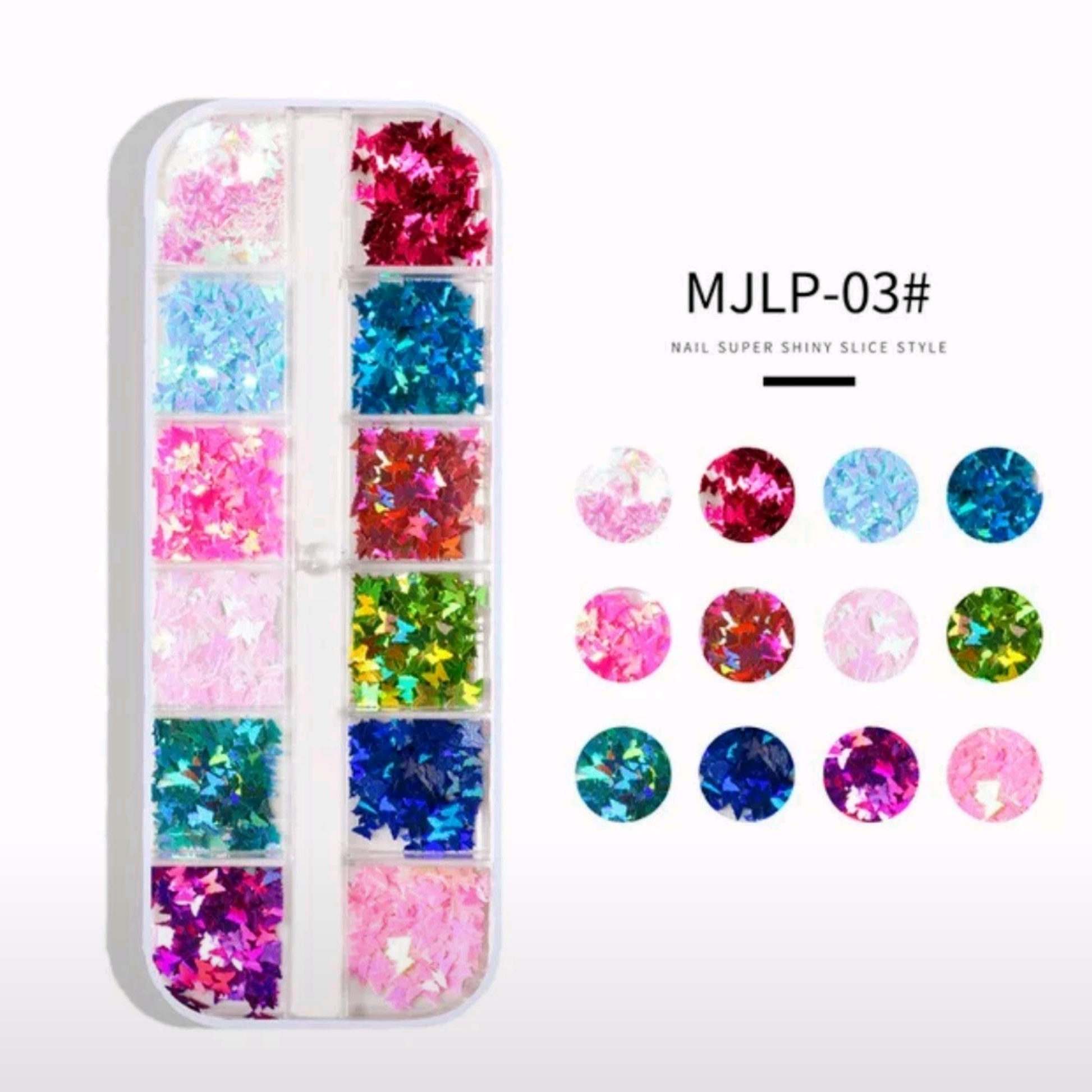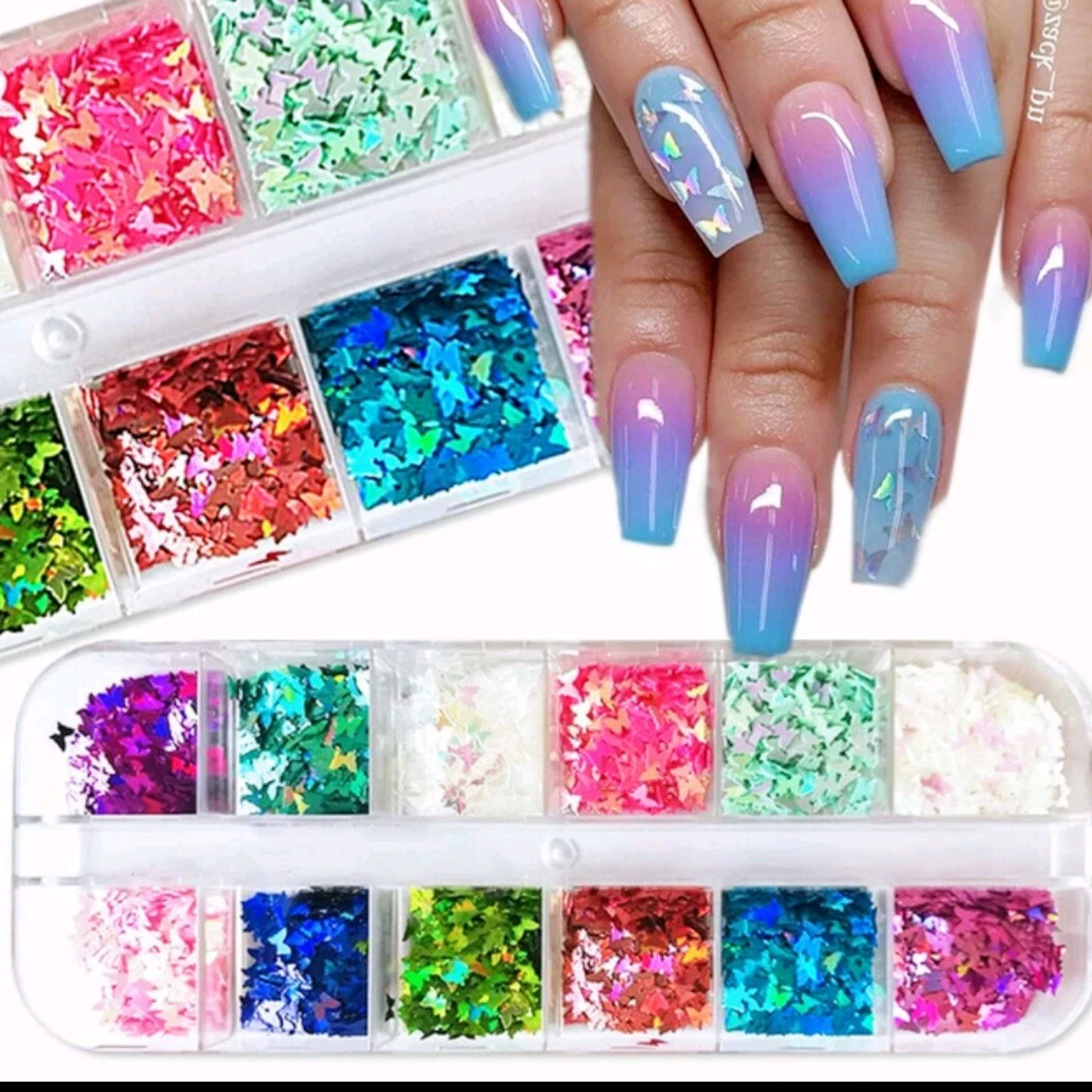 Enhance your nail art with the Nail DESIGN Butterfly 3D Holographic Color Set. Featuring 12 vibrant colors and shimmering glitter flakes, this set adds a stunning holographic effect and delicate butterfly-inspired details to your nails. Perfect for creating eye-catching, multidimensional designs that stand out with every movement. Ideal for both beginners and professionals looking to elevate their nail creativity.