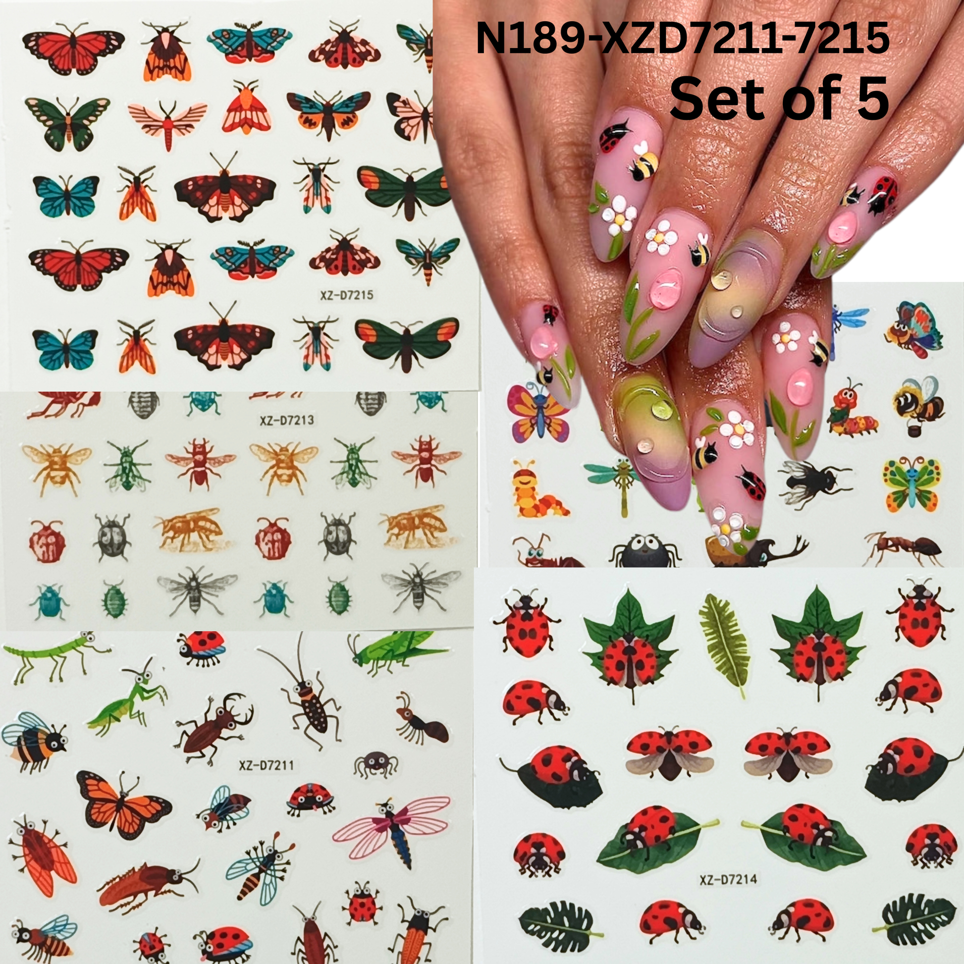 Set of 5 Insect & Butterfly Nail Art Stickers – Easy to Apply & Long Lasting