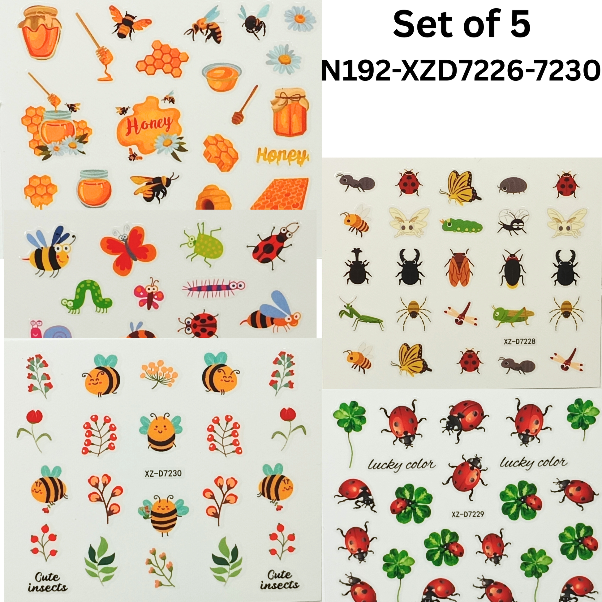 5 sheets of 3D colorful insect & butterfly nail decals (assorted designs)