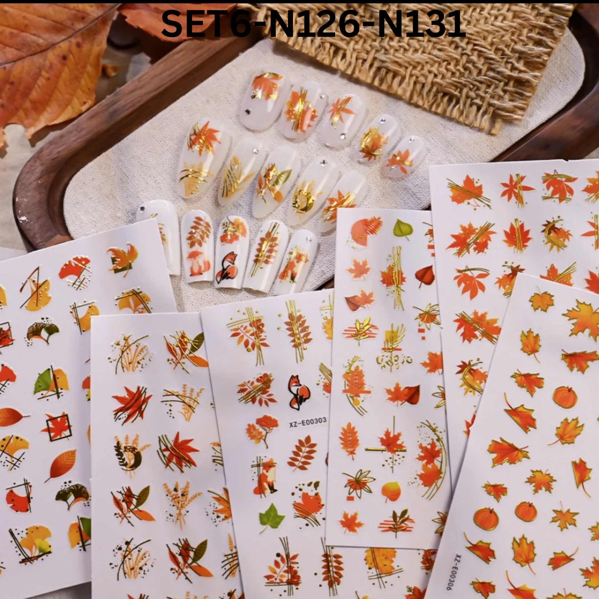 Set includes 6 sheets of fall-themed nail stickers