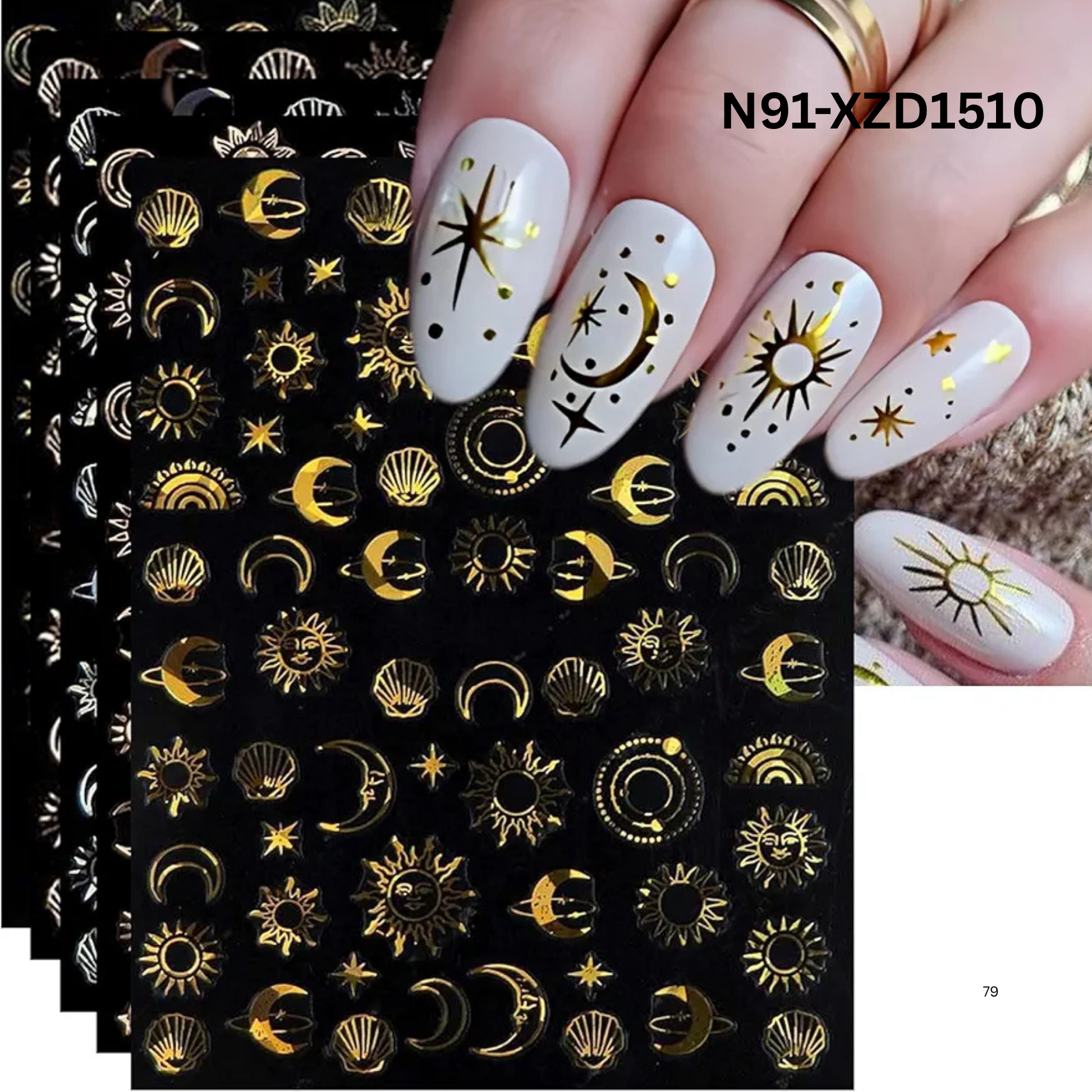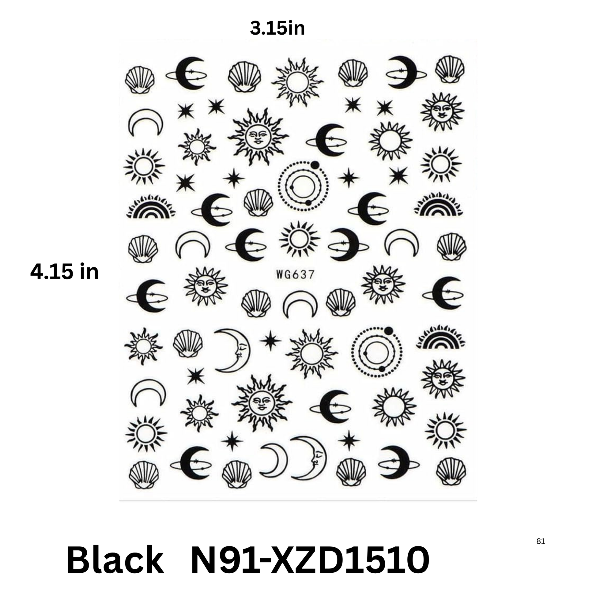 Create stunning, mystical nail designs with these celestial-themed nail stickers. Featuring detailed designs of the sun, moon, stars, and more, these self-adhesive decals are perfect for DIY nail art or salon use.