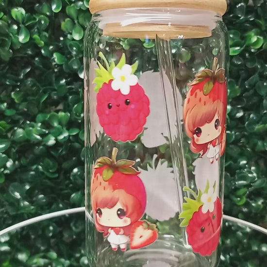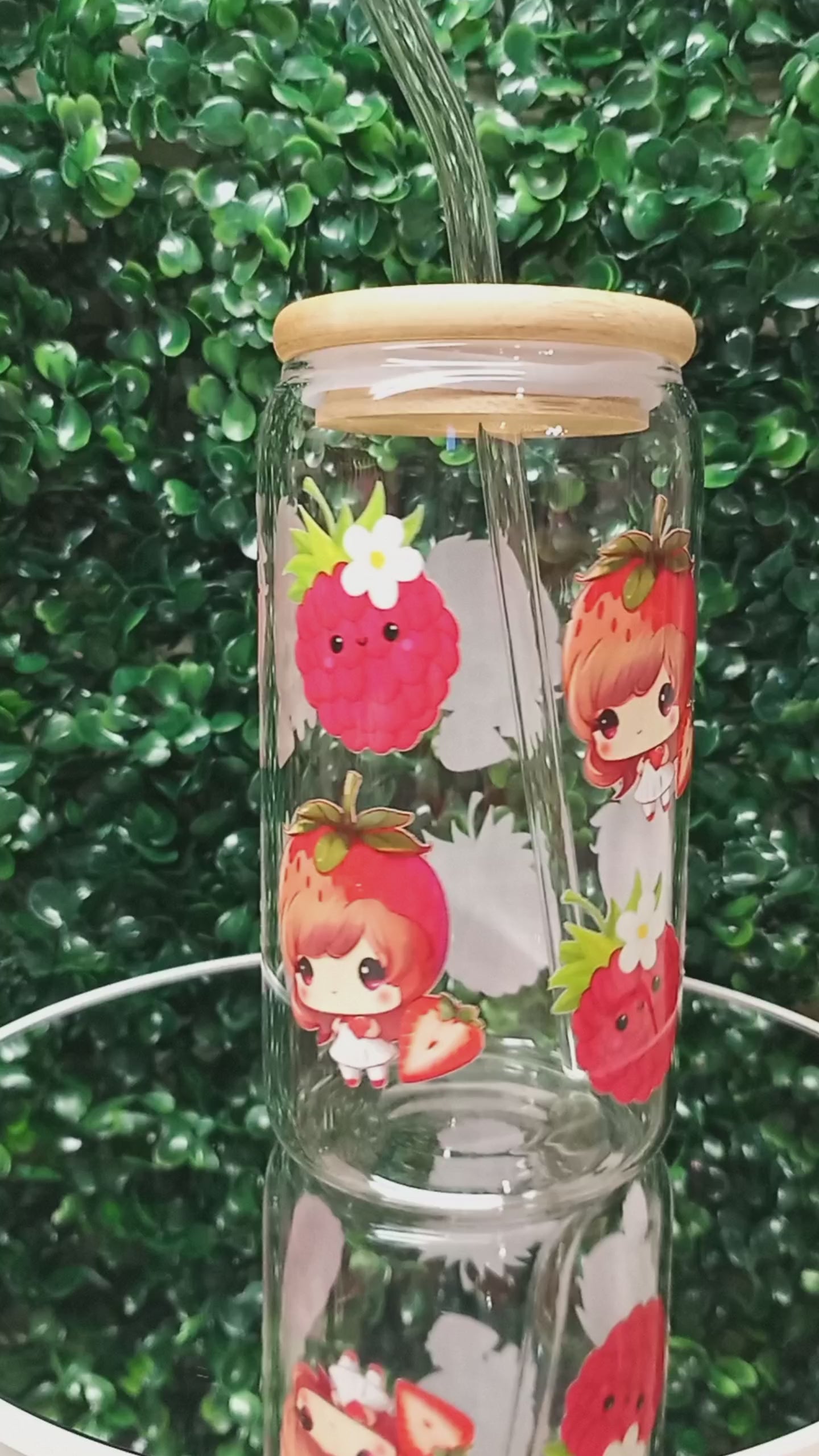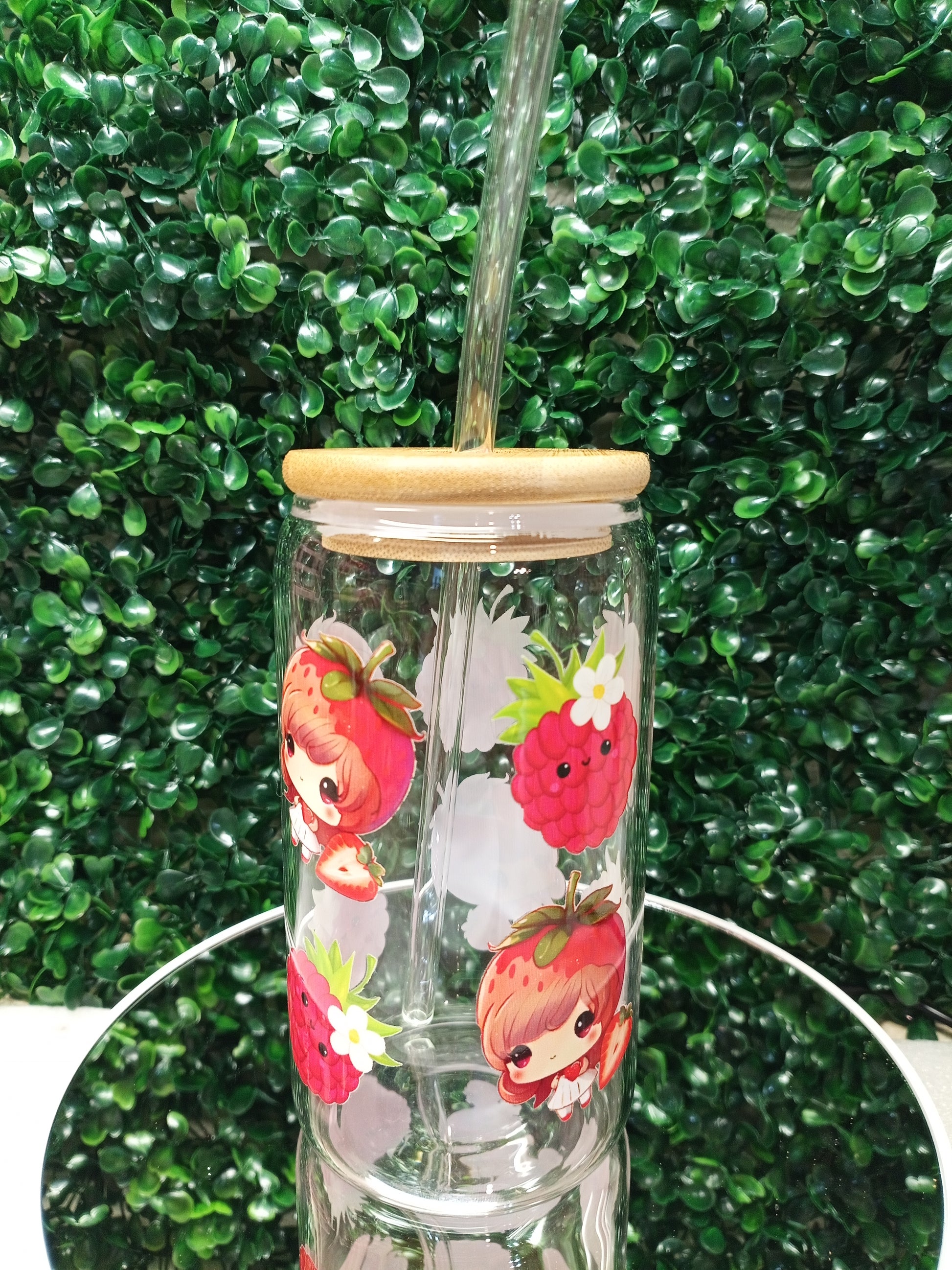 Sweet Strawberry glass cup, Personalized Glass Cup 16oz & 20oz Tea, Coffee, Smoothie Glass, Perfect for Home, Office, Party, Birthday cup
