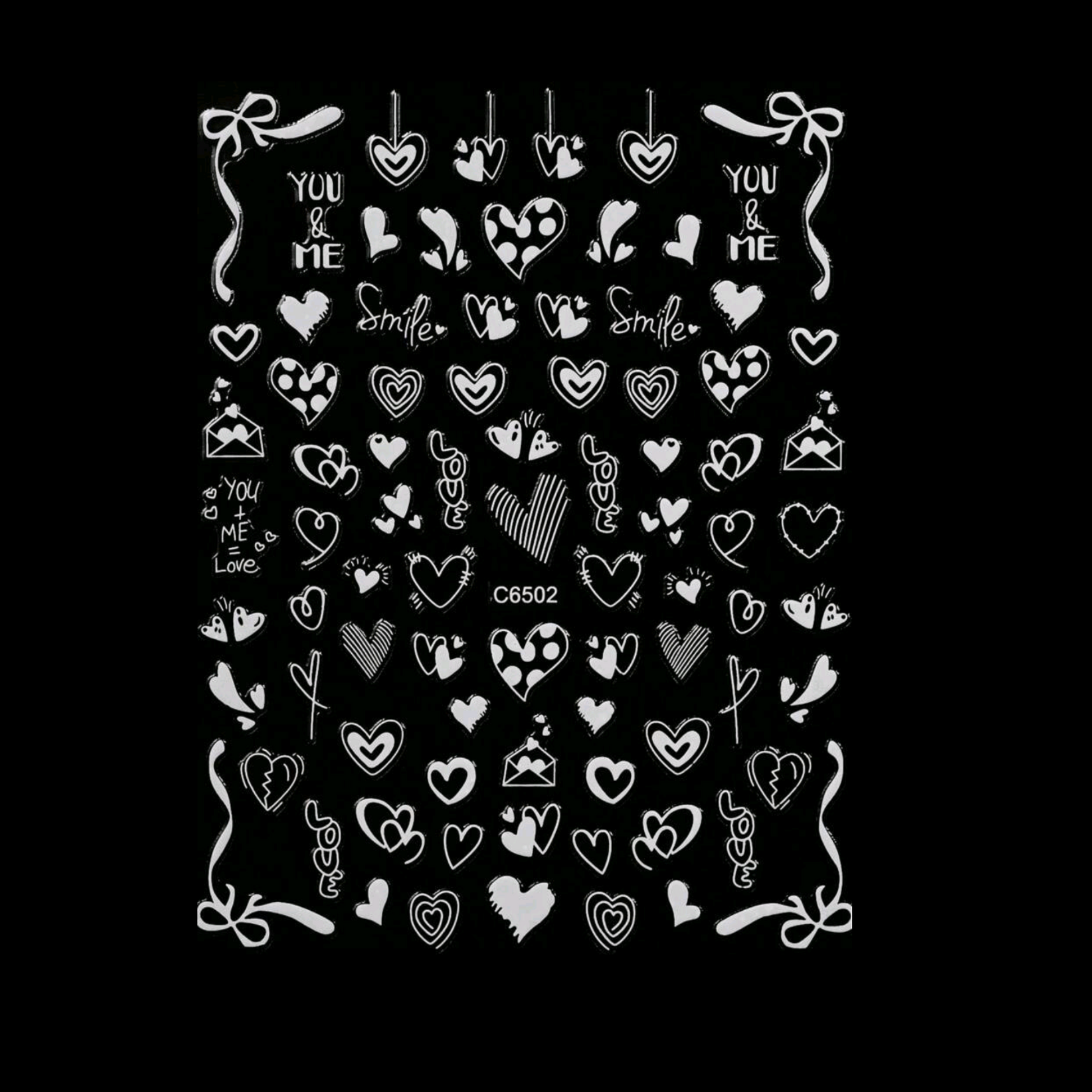 Add a soft and elegant touch to your nails with these White Love Heart Nail Art Stickers! Featuring cute hearts, romantic quotes, and doodle-style designs in a clean white color, perfect for creating simple yet stylish manicures.